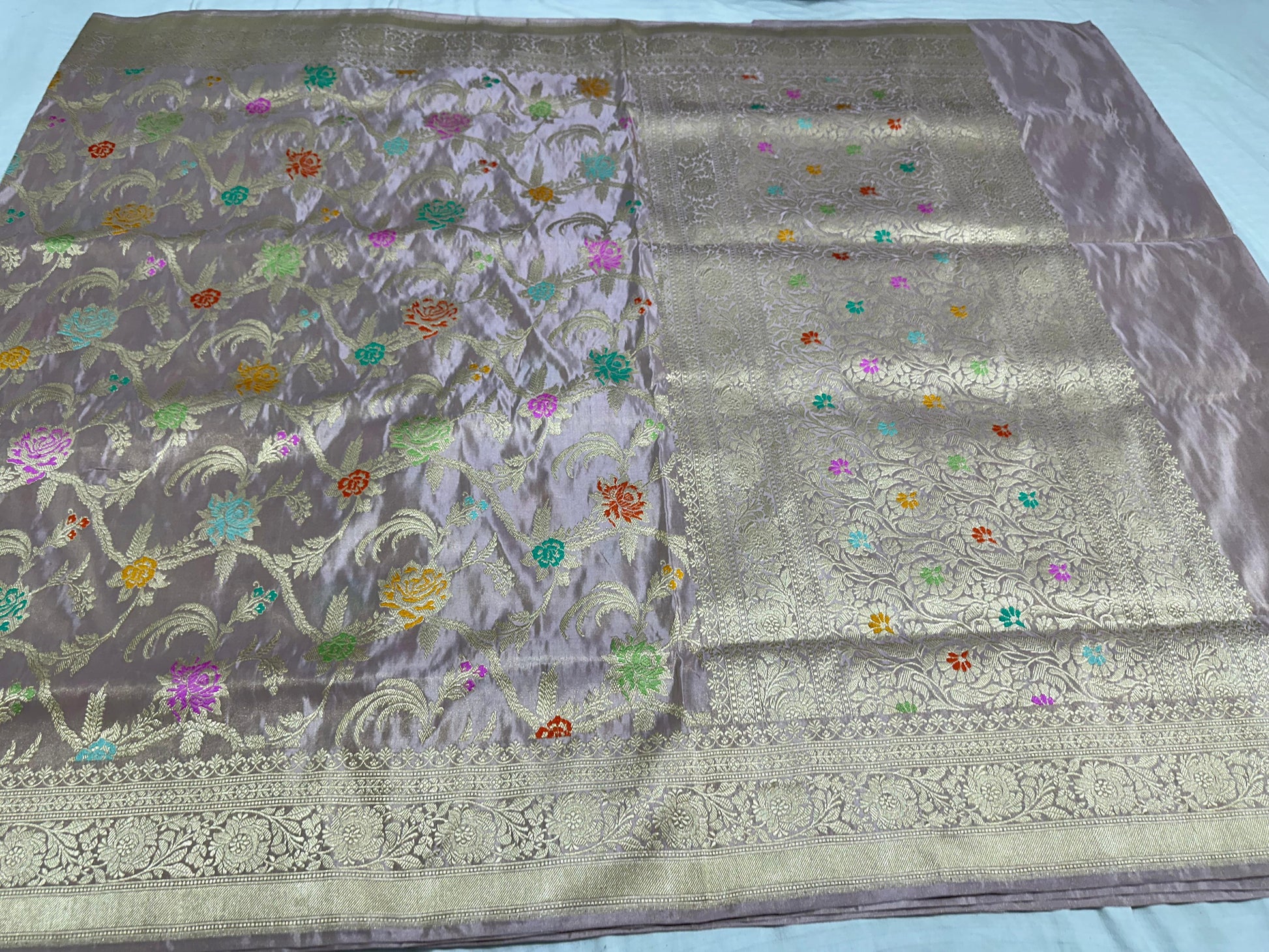 Nude Pink Pure Handwoven Banarasi katan Tissue Silk Saree