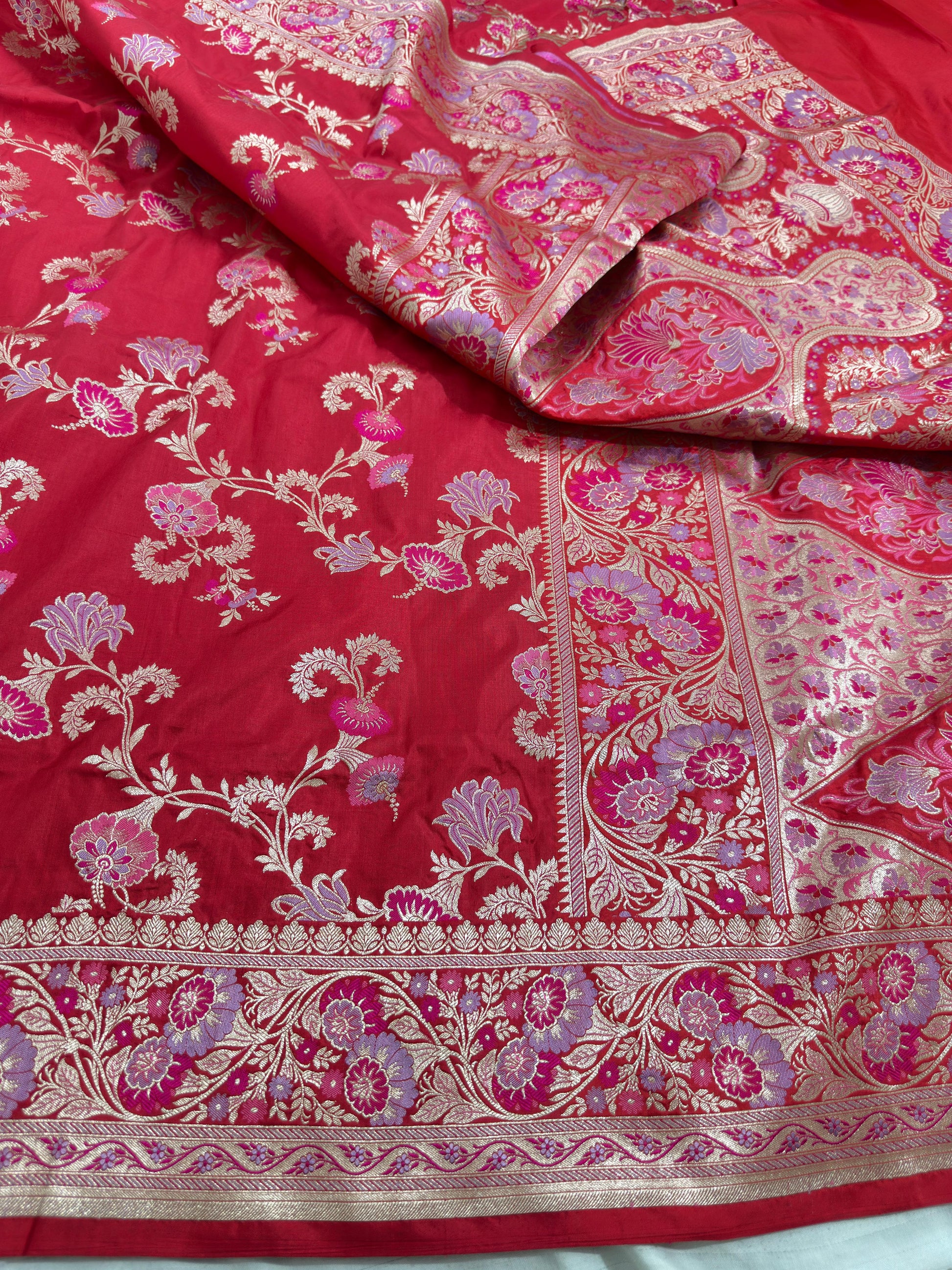 Crimson Red Pure Katan Silk Saree